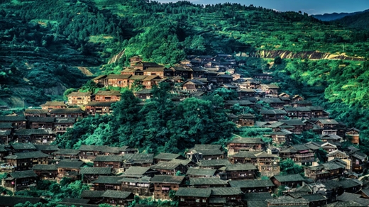 , 由十余个依山而建的自然村寨相连成片