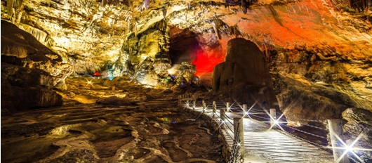 早餐后,统一乘车约2小时车程前往国家重点风景名胜区、国家地质公园——【织金洞】(游览时间约2.5小时,景区观光车20元/人+10元保险,费用客人须自理),进入“此景只应天上有,人间哪有几回游”的天下第一洞,观雄伟壮观的“地下塔林”,登“南天门”感受织金洞的大、奇、全。洞中遍布石笋、石柱、石塔、石花、石芽、卷曲石、云碟、梅花田、珍珠田、边石坝等四十多种堆积物,形成千姿百态的岩溶景观。洞道纵横交错,石峰四布,流水间歇水塘,地下湖错置其间;高大的石曼、石帷如从天上垂下,颜色各异;地下烟河烟雾飘渺,深遂莫测,被誉为“岩溶瑰宝”、“溶洞奇观”。赏“雪压青松”,逛“灵霄殿”,观十七米高的“霸王盔”和同样十七米高的球宝“银雨树”,让您亲身体会天上皇宫、人间仙境的真正含义。下午游览完毕乘车返回贵阳,结束当天愉快的旅程