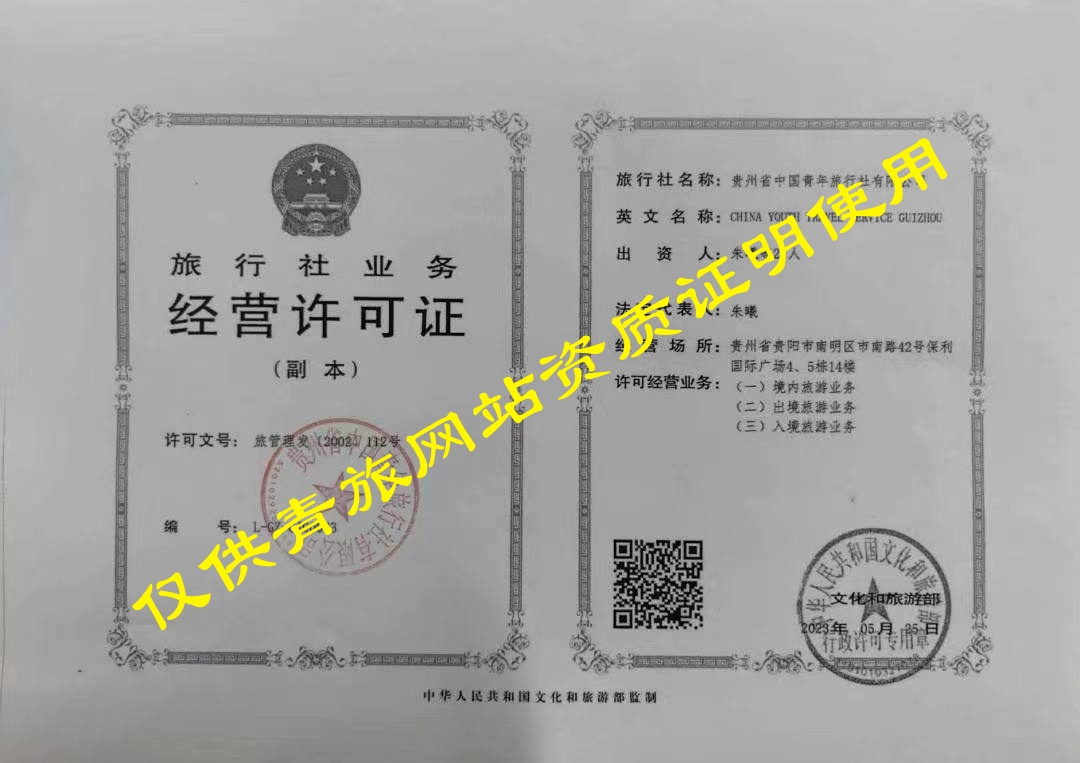 贵州省中国青年旅行社有限公司旅游经营许可证